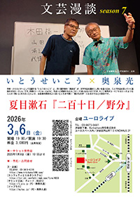 同類のトークショーのように、作品への理解を与えることにこそ違いはないのですが、そこに、博学がユーモアをまとったような二人の『笑い』が入ることにより、お客さまの興味をより深いところまで誘い、“豊かな文学”になるのでは、との試みです。